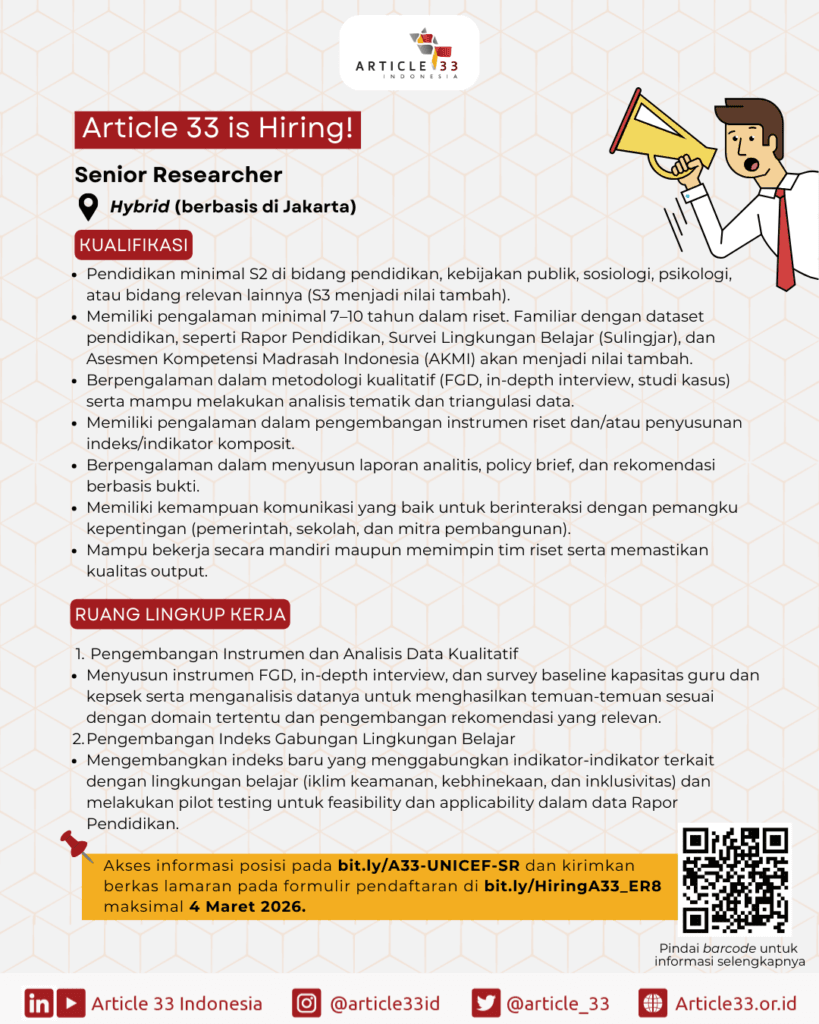 Article 33 Indonesia is Hiring: Senior Researcher